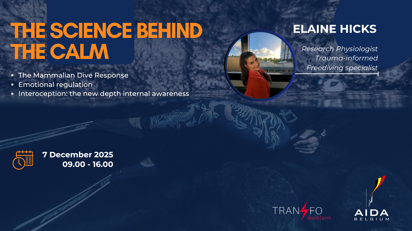 Elaine animera un atelier immersif d’une journée complète, intitulé “La science derrière le calme”. Elle proposera aux plongeurs des outils pratiques pour l’interoception (la capacité à percevoir les signaux internes de notre corps), la régulation émotionnelle et une meilleure compréhension du réflexe d’immersion.
